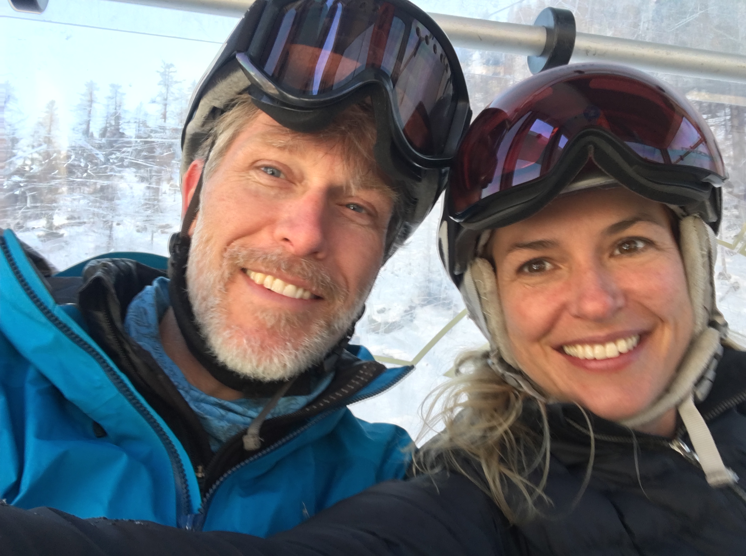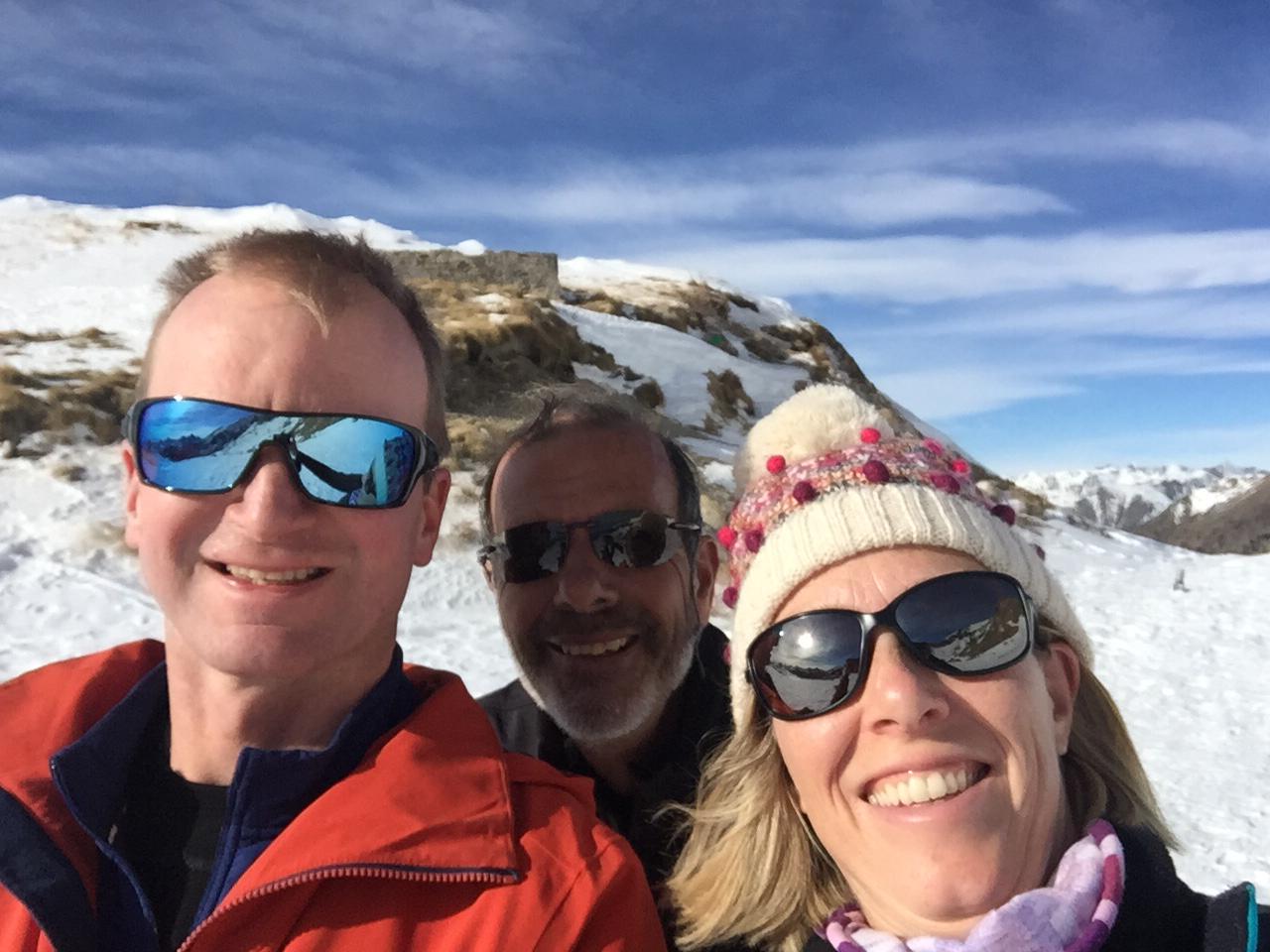 Nicolas and Beth “racketed” to the summit with help from the guide